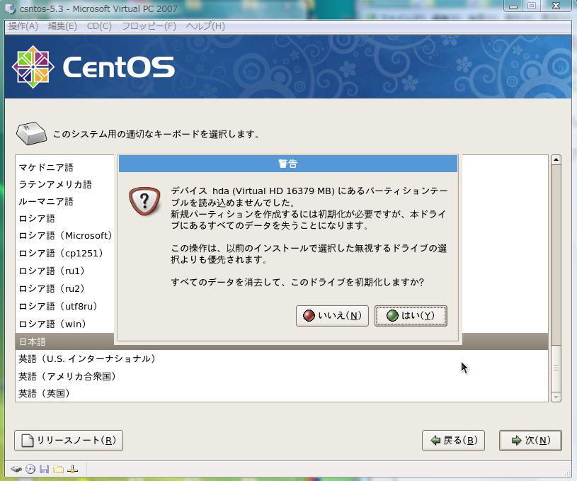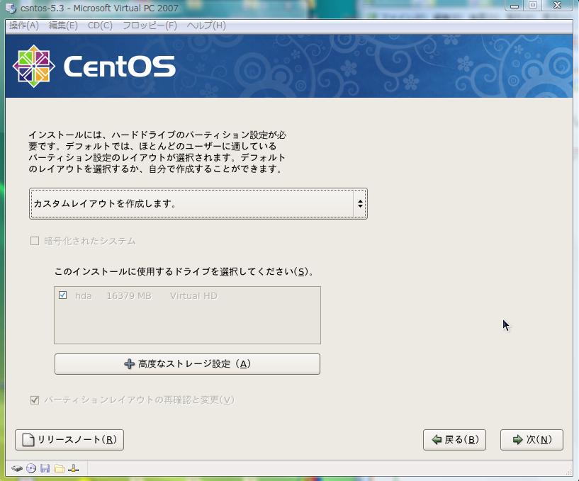 | ボタンを左クリックして パーティション設定 へ進む | |||||||||