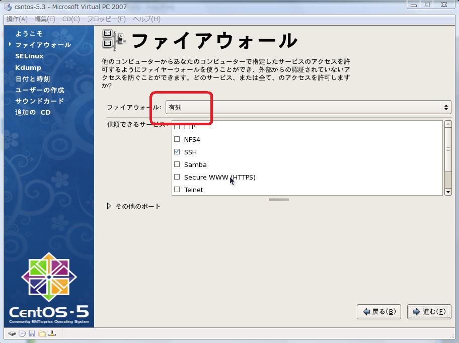 | ファイアーウォール 有効 SSHのみチェック 後でどうにでもなる。 |