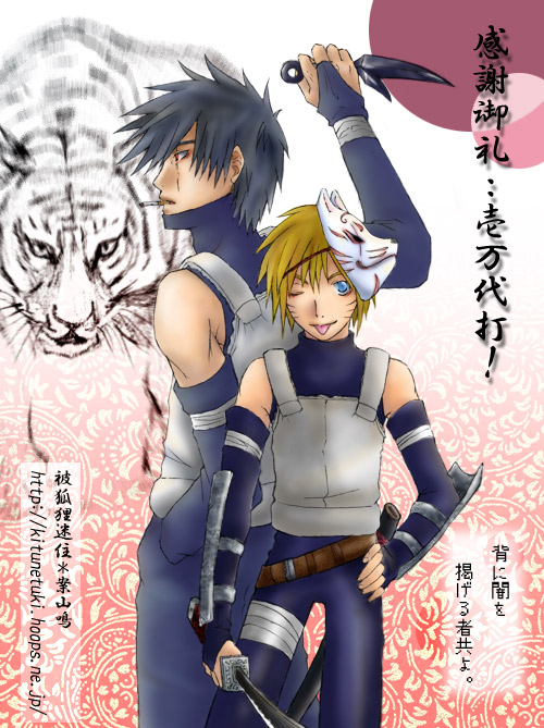 かかかかかっこいぃぃぃ〜〜§(>_<)§ どーちてこんなステキな絵が描けるんですかぁぁっ 暗部のナルちょって萌ですよねぇ。じゅるり そして任務の間にはかかってんてーに×××されちゃって〜「せんせぇっ任務中だってば…あん」みたいなの希望(笑) 案山鳴様、ステキなイラストありがとうございました<m(__)m>