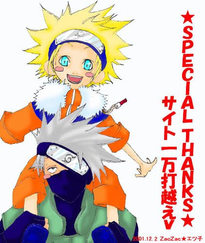 一目見た瞬間、ナルちょかわい〜と叫んでしまいました。 もうめっちゃ犯罪的にかわいいですよ! そしてそして!この華奢な手足〜vぐはっ(゚-゚) 抱きしめたい〜 カカシ、絶対「肌がすべすべで気持ちイイ」とか「太ももの感触がたまらん」とか 考えてる顔ですよねvvv気持ちは分かるぞカカッスィー!! エツ子さま、ありがとうございました<m(__)m>