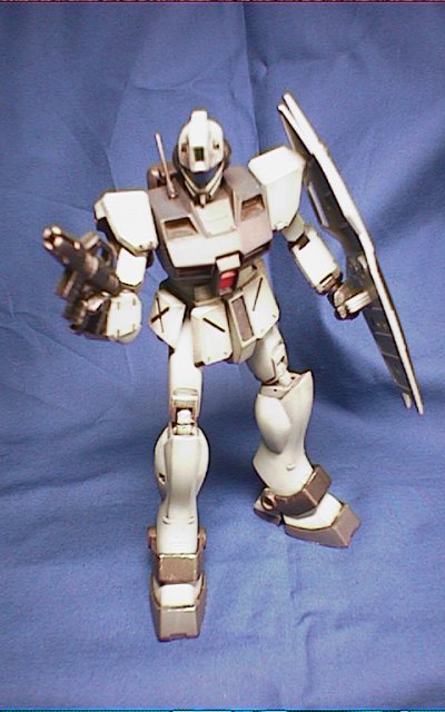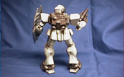 MS空挺部隊、『チュシャキャット』の隊長機です!隊長機なんで、新型、高性能じゃなきゃ!(妄想上)って事で、このキットを作りました。塗装は、グレー系(GMの標準色作り失敗)で整え、黒+茶のウォッシング、そして、シルバーのブラッシングでキメ!改造面は、武装をスプレーガンに変更と頭部の耳を社外品パーツで膨らませています。