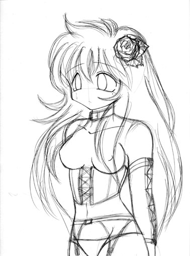 結構(2〜3年)前に描いたもの。 いつものことですが頭と体のバランスが悪い(汗) 胸と腰のくびれが上手く描けたんじゃないかと。 こんな格好もサガに頼まれればやってしまうアフロ。 仕方なくって感じだな(苦笑)