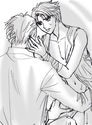 ラフですが。ヘクマシュは、若さまの膝の上にマシューが乗ってるイメージが、SS書き始める前から、ずっと頭の中にありました。