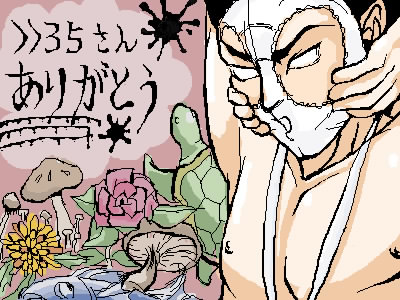 (2005Jan24)変態仮面、背景は笠井あ○み先生の美味し○ぼの画像の影響