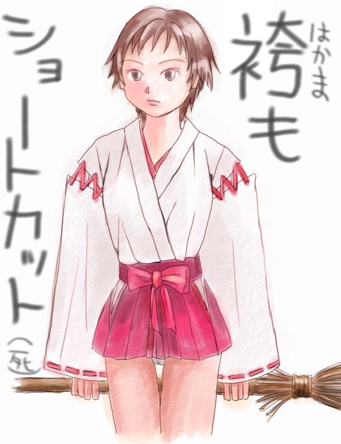 ショートカットの巫女さんきぼんぬ。