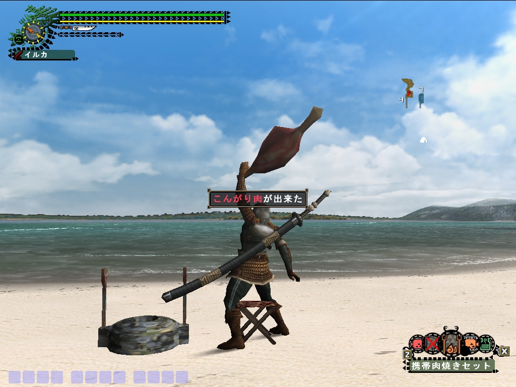 これはクエスト中に肉が上手に焼けた時です。 こっちは町で釣りをやってみました。(分かりずらい;)