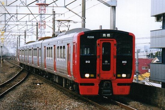 811系では3両編成から組成できる予定でしたが 結局4両編成単位での運転しかありませんでした。そこで、2両編成から運転できる 車両として813系が開発され、福岡地区だけではなく、長崎本線系統の ローカル運用も可能なように計画されました。100番台以降は全自動連解装置や幌設備も備えています。車体そのものはJR九州による設計ですが、前頭部の設計とカラーリングは ドーンによってコーディネートされました。 近郊型電車にもかかわらず、従来の路線を放棄して、赤色を多用した車両で、外観は、 ステンレスの素材を活かし、一般的には廃止されている傾向であるビートを飾りとして、 多く入れているのが特徴で、角張った、いかつい印象を与えます。 このステンレスの処理方法は、同時期に登場した883系(ソニック)にもいえます。