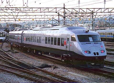 さらには、熊本駅が市街地から遠いことから、昭和62年4月(JR発足時)より 市街地に直接乗り入れる高速バスに対抗して、 市街地の近くを通る豊肥本線の水前寺まで乗り入れが開始されました。 当時、豊肥本線は非電化でしたので、ディーゼル機関車であるDE10の後ろに 貨物列車用の車掌車を改造した電源車を連結して乗り入れ。