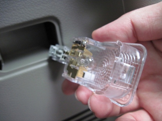 上半分くらいを外して、パネルを引っ張り、 手を突っ込んでソケットをひねるとバックランプが外れてきます。交換しておしまいです。