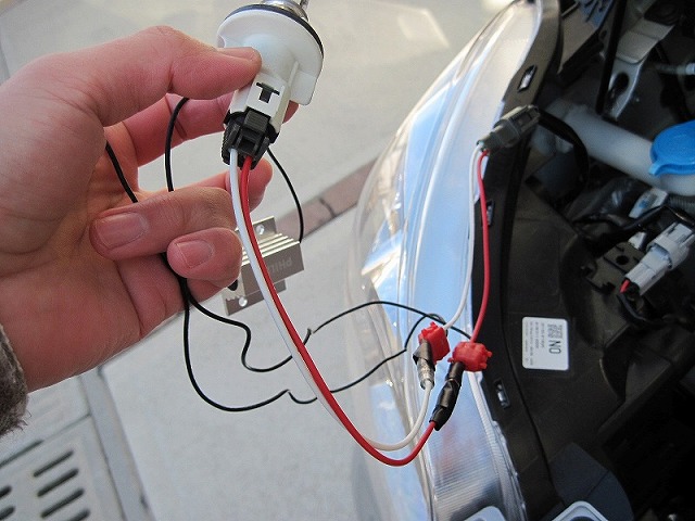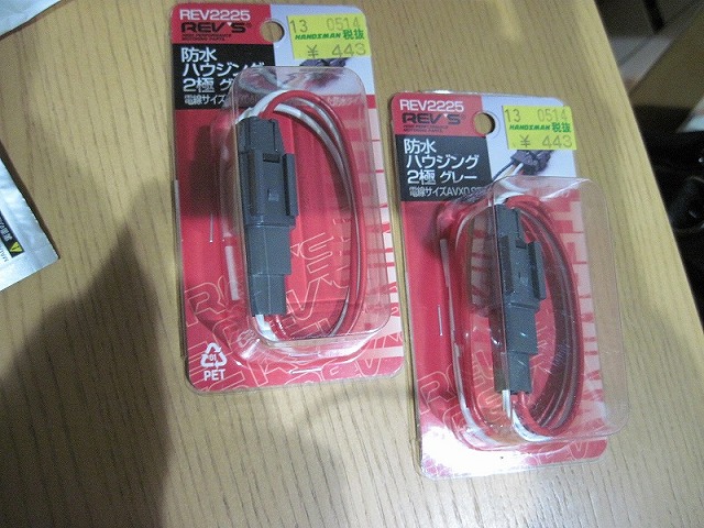 抵抗を入れるのに純正配線に手を加えたくなかったので、近くのホームセンターで防水ソケットを購入し、 従来の配線に割り込ませました。