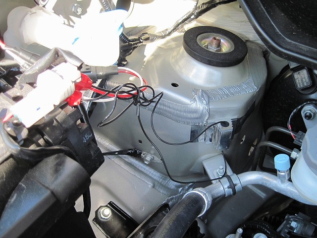 右側は耐熱テープでとめてあります。 半年後に久々に開けて点検しましたが、外れたり溶けたりすることなく大丈夫でした。