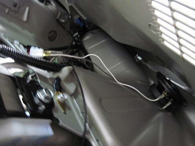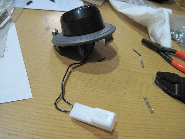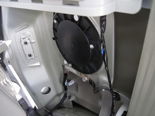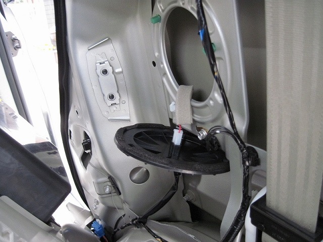 フロントのツィーターは蓋のようなものがパネルにあるので、これを外すと配線がきています。