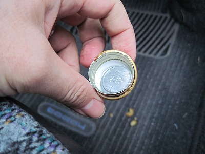 構造としては、ストップランプは点灯がデフォルトで、ブレーキペダルを離すことで、消灯スイッチが 作動している、という考え方が出来るようなので、取り急ぎ、栄養ドリンクの蓋に1円玉を2枚入れて マスキングテープでとめておきます。