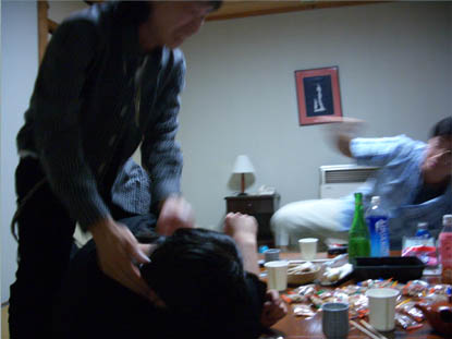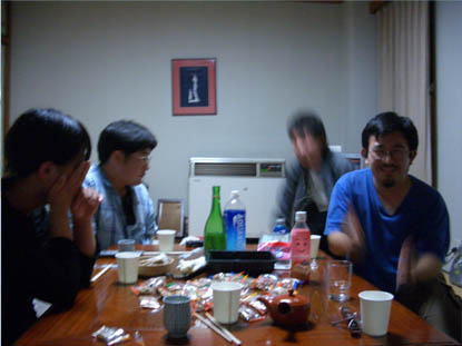 飲み会時間になりました。謎のXと撮影拒否者がいます