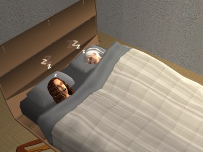 ベッドが一個しかないので椅子取り合戦ならぬ