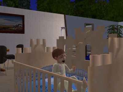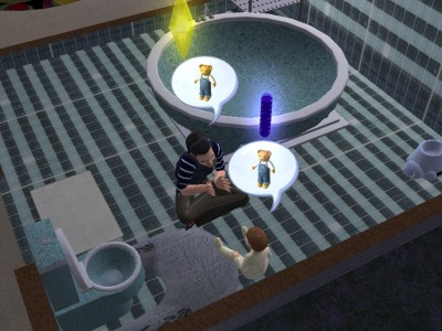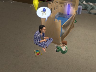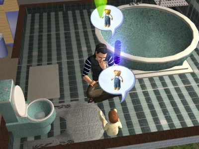 今度はおまるに連れて行かれるサカモトちゃん サカモト「(もーなに、このしと!パパ?)」