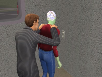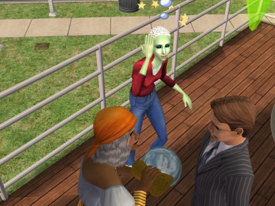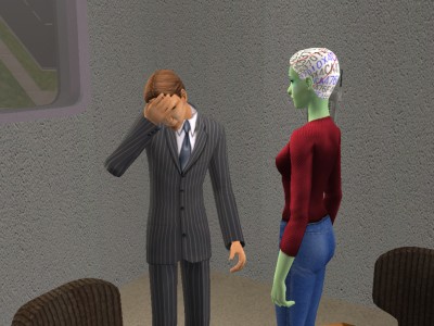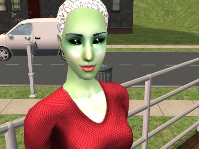 サカモト「(うわ〜緑だよ・・・しかもなんか髪の毛変だし・・・)」 宇宙人「なにぃ〜?どうかしたわけぇ〜?」