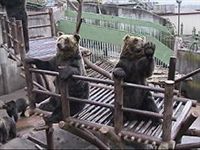 10:00 ロープウェーに乗って登別クマ牧場へ | 熊のショーやアヒルの競争などもやっていました。 クマのおやつが100円で売っていてクマたちも 「ちょうだーい」と手を上げて催促します。 クマ牧場の横にあるアイヌの村で民族衣装を着ました。 パパもママも着たんだよ!一着200円です。 12:00出発! ![]()