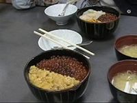 次は食堂に入りパパはウニいくら丼! | ママは三色丼!(ウニ・いくら・ホタテ) ホテルで朝食食べてきたのにまた食べる・・・。(^^ゞ この後雨が降ってきてママとまどちゃんは車でお留守番。