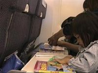 帰りの飛行機の中では折り紙をして遊びました。 | パパ!飛行機の中でビデオ撮ったらダメよ!ヾ( ̄o ̄;) ォィォィッ この後慌ててしまってました。(^^ゞ |