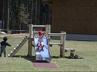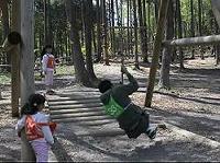 ロープにつかまってターザンのように幅跳び!パパだけ↓重そう・・・σ(^◇^;)