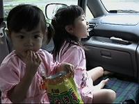 | 7月29日 今日は東名自動車道で富士サファリパークに行きました。御殿場インターで下りようと思ったら アウトレットショップが見えて「あそこに行きたーい!!」と言うママにしかたなく付き合うことに・・ うちが着いたのは午前9時半!帰る頃の12時半には駐車場に入るための車が大渋滞!! よかった〜早い時間で・・・。午後はサファリパークに!あやちゃんは恐がって隠れてたけど まどちゃんは「しゅごいねー(すごいね)おおちいねー(大きいね)」を連発し大喜び!! ここは何周もできるので2回目廻り始めたら飽きたのかおやつタイムになってしまった・・・。 ![]()