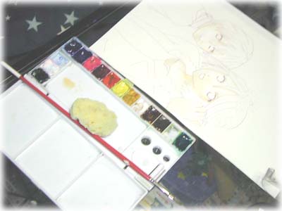 どうでもEけど訴えたい「管理人と絵について」のページ。 「CGをこうして塗ってます」は→こちら ↓水彩着彩に喘ぐ部屋。げんなり **ある夜の作成現場を激写**