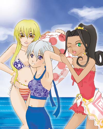 あんまり露出するのも…とか水の抵抗は…とか考えたんだけど結局着せたい水着ですね。織姫は一番苦労。まずどこに入れるかに苦労。水着も他2人とかぶらないようにとか…ゲーム中の水着はあんまり良いと思えないので意地でも変えたかったんですYO…でも姫様オシャレ人種なので小物ごっそりかけたから結構たのしんでやりましたよvv腰のなんか(本当になんだ)とかも柄ちゃんと決めてあったりそういうのかくのが大好きなので…