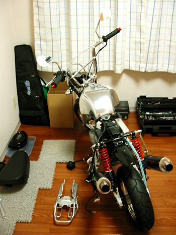 ウインカーの取り付けボルトが、8mm径なのでドリルで既存穴を広げ