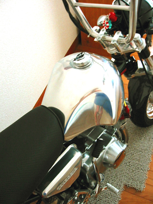タンクの錆/腐食回避と、航続距離の増進目的もあり純正の愛らしいタンクを