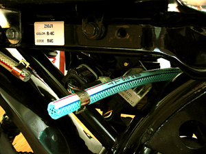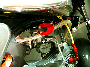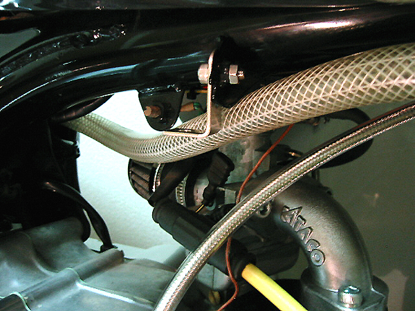 コノ箇所は、純正のイグニションコイルが収まる部分を利用し、L字型 SUS製