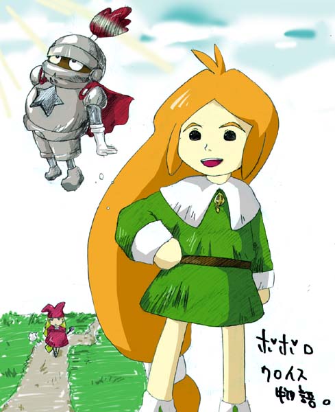 ポポロ初描きです・・・。痛いですなァ。今頃になってようやくポポロTをやっております。 ピエトロ可愛い〜!!強いし!!騎士より強いですな。声は高山みなみさんだし! ピエトロの足はずっと素足と思ってドキドキでした。(クリティカルとか突っ込んでいくし、見える(嬉)! とか思ってました)。